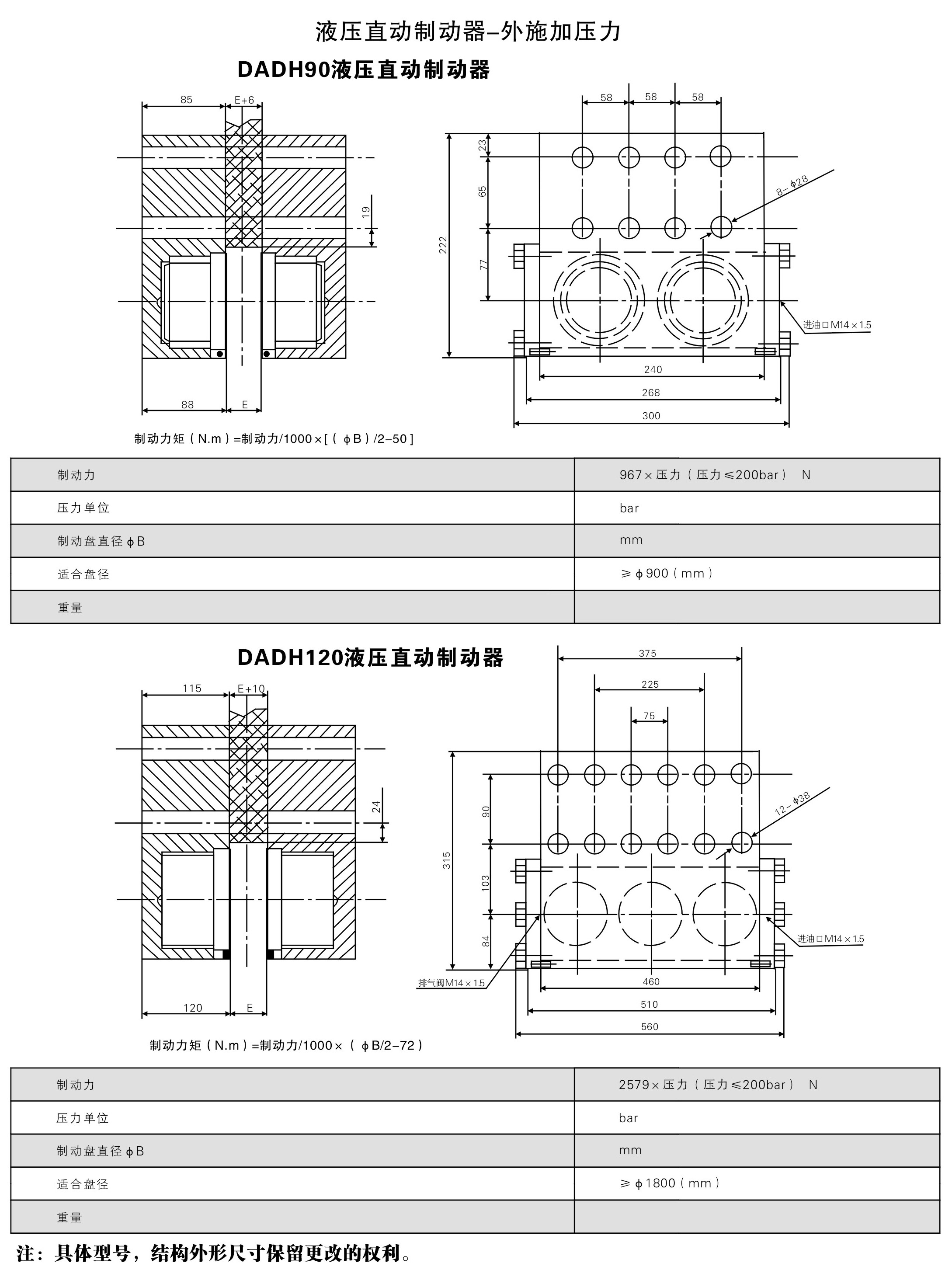 DADH90/DADH120液壓直動盤式制動器