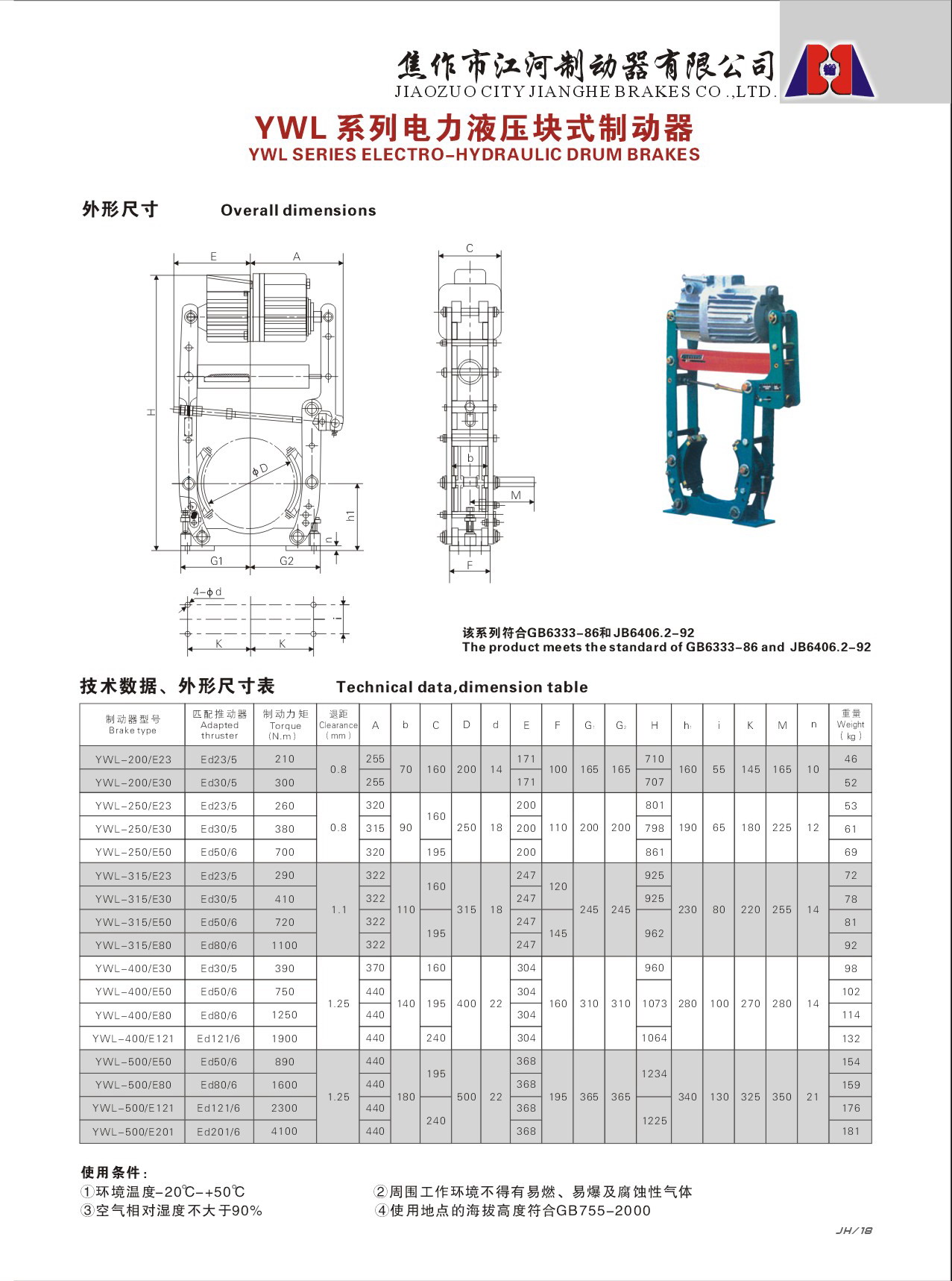 制動器安裝尺寸和制動力矩參數(shù):GB6333-86標準,技術(shù)要求符合JB/T6406-2006標準。