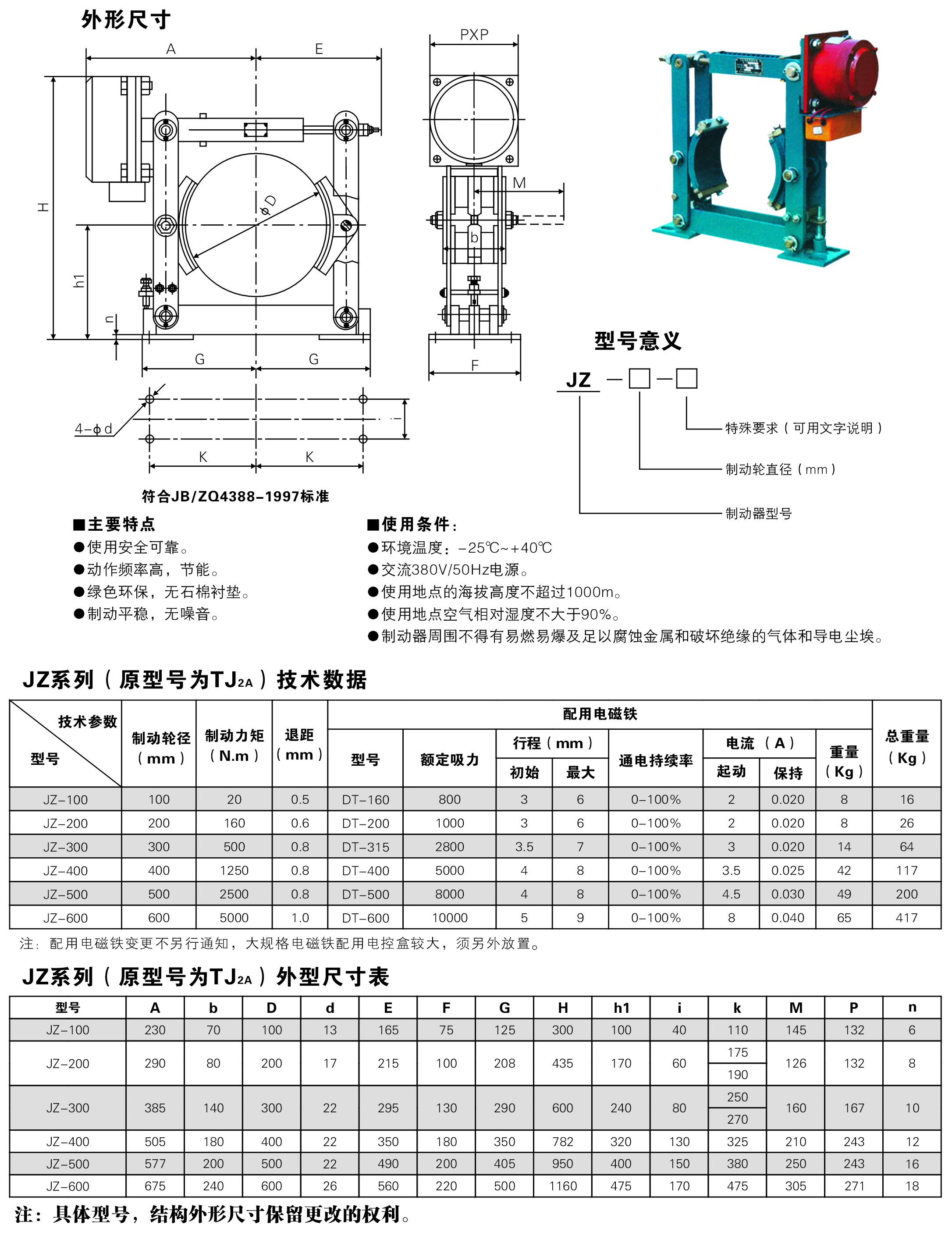JZ系列(原型號為Tj2A)技術數(shù)據(jù)